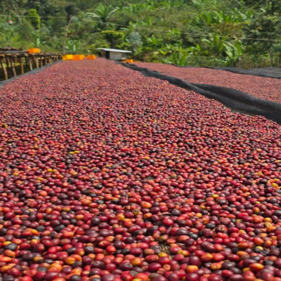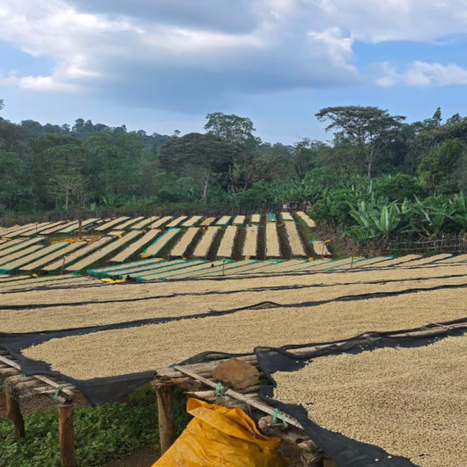 精 製: トゥリーセ・ケベレ周辺の小規模農家から、熟した赤いチェリーが選別され、手作業で収穫される。 精製には最高品質のチェリーのみが使用される。これらのチェリーは高床式の乾燥棚に広げられ、太陽光の下で乾燥される。乾燥中には自然発酵が進行し、均等な乾燥を促すために定期的にかき混ぜられる。この丁寧な工程が、クリーンで甘みのあるフレーバープロファイルとなってる。